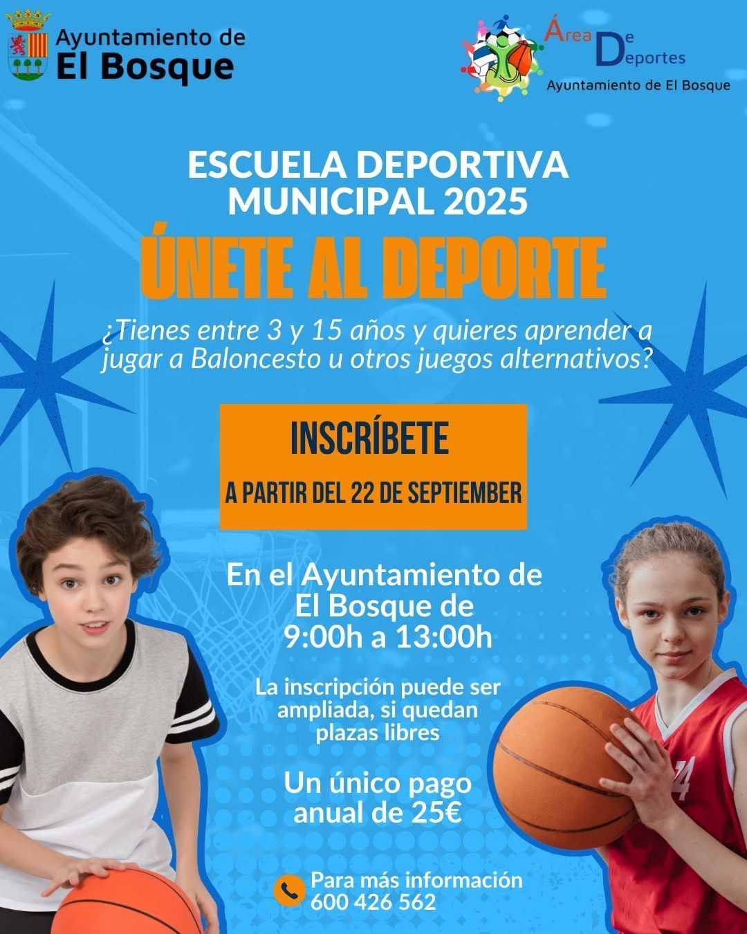 Inscríbete a partir de l 22 de septiembre en el Ayuntamiento de El Bosque de 9:00h a 13:00h.